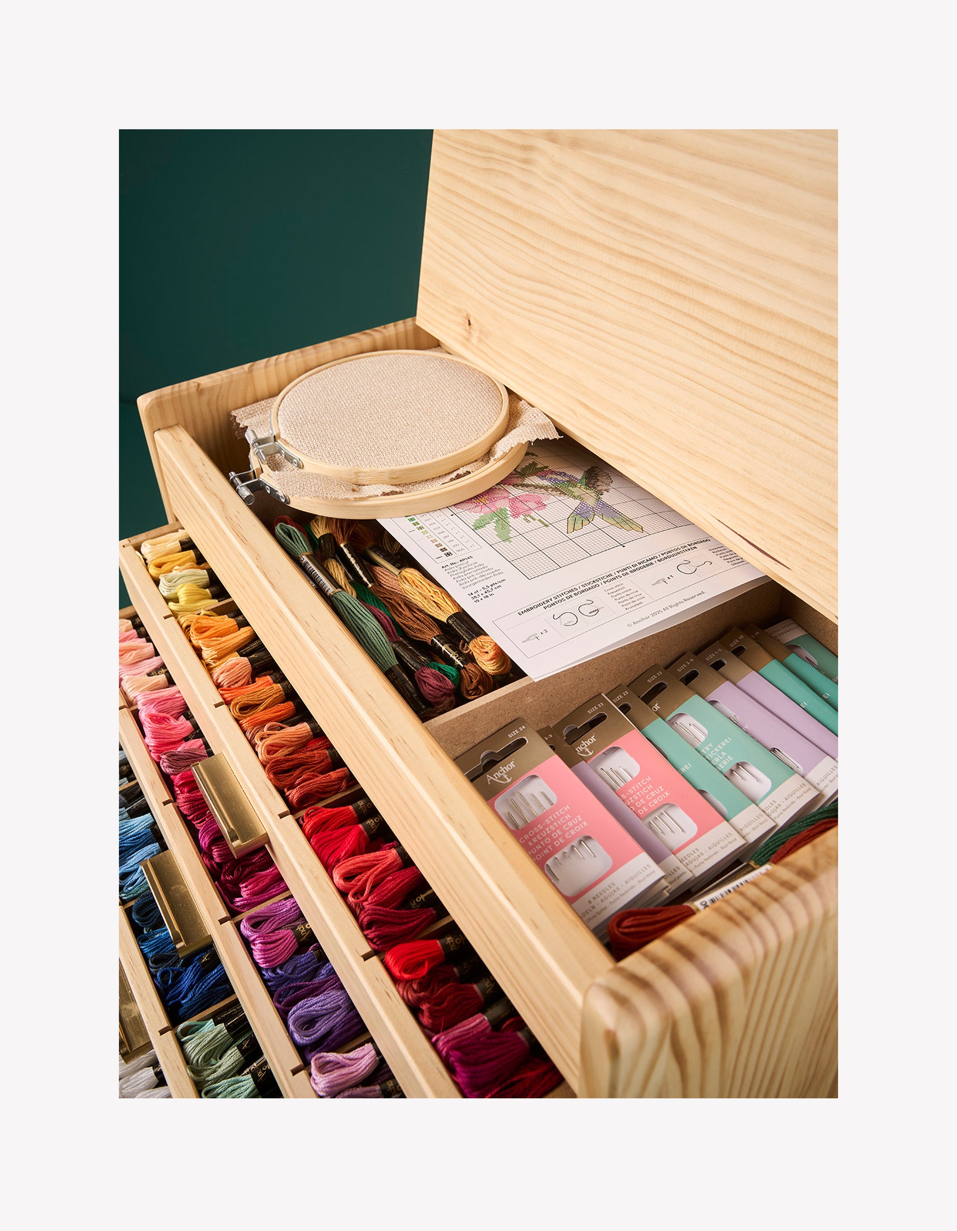 Es verfügt über fünf geräumige Schubladen, die jeweils in fünf Fächer unterteilt sind, sodass Sie Ihre Sachen leicht sortieren und trennen können.