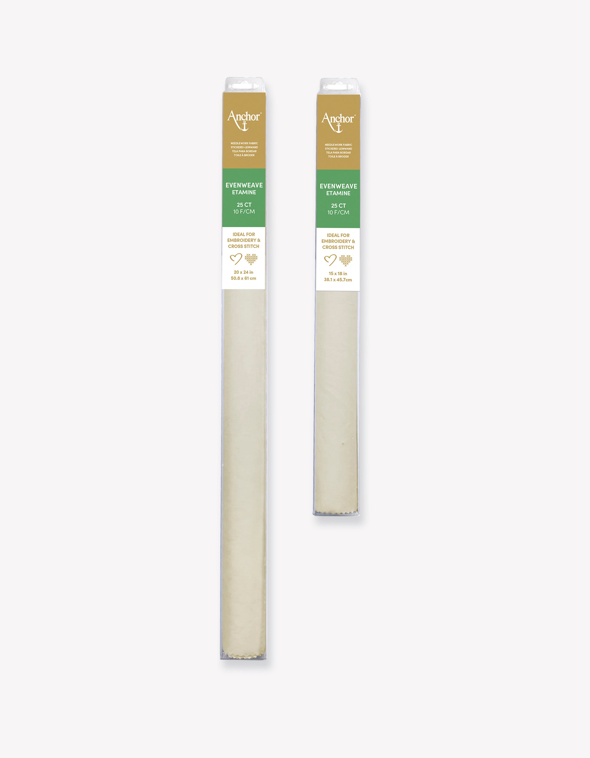 Esta tela precortada etamina se vende en 25 unidades / 10 f/cm y en un tamaño de 38,1 x 45,7 cm / 15 x 18 pulgadas.