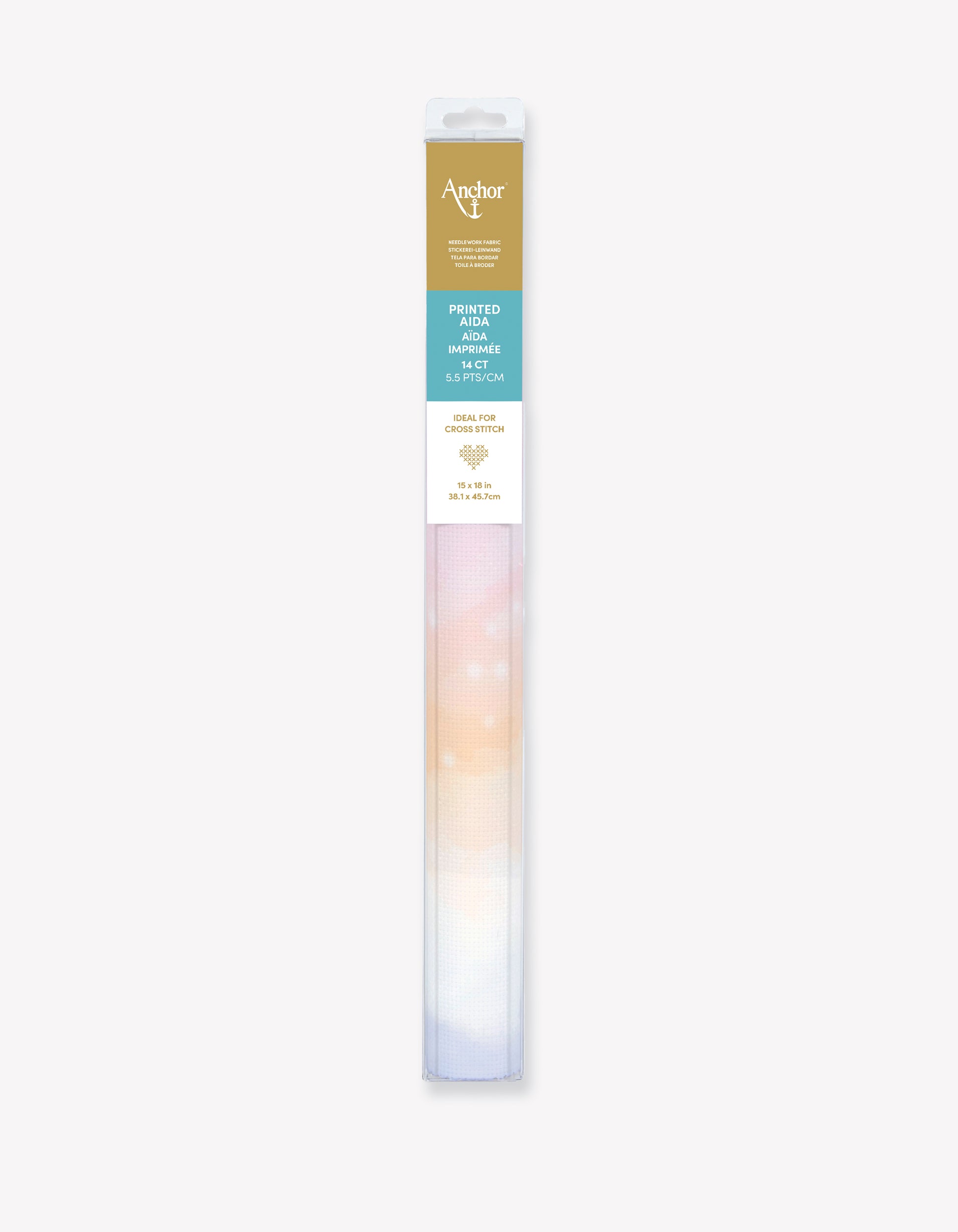 Esta tela precortada aida se vende en 14 unidades / 5,5 pts/cm y en un tamaño de 38,1 x 45,7 cm / 15 x 18 pulgadas.