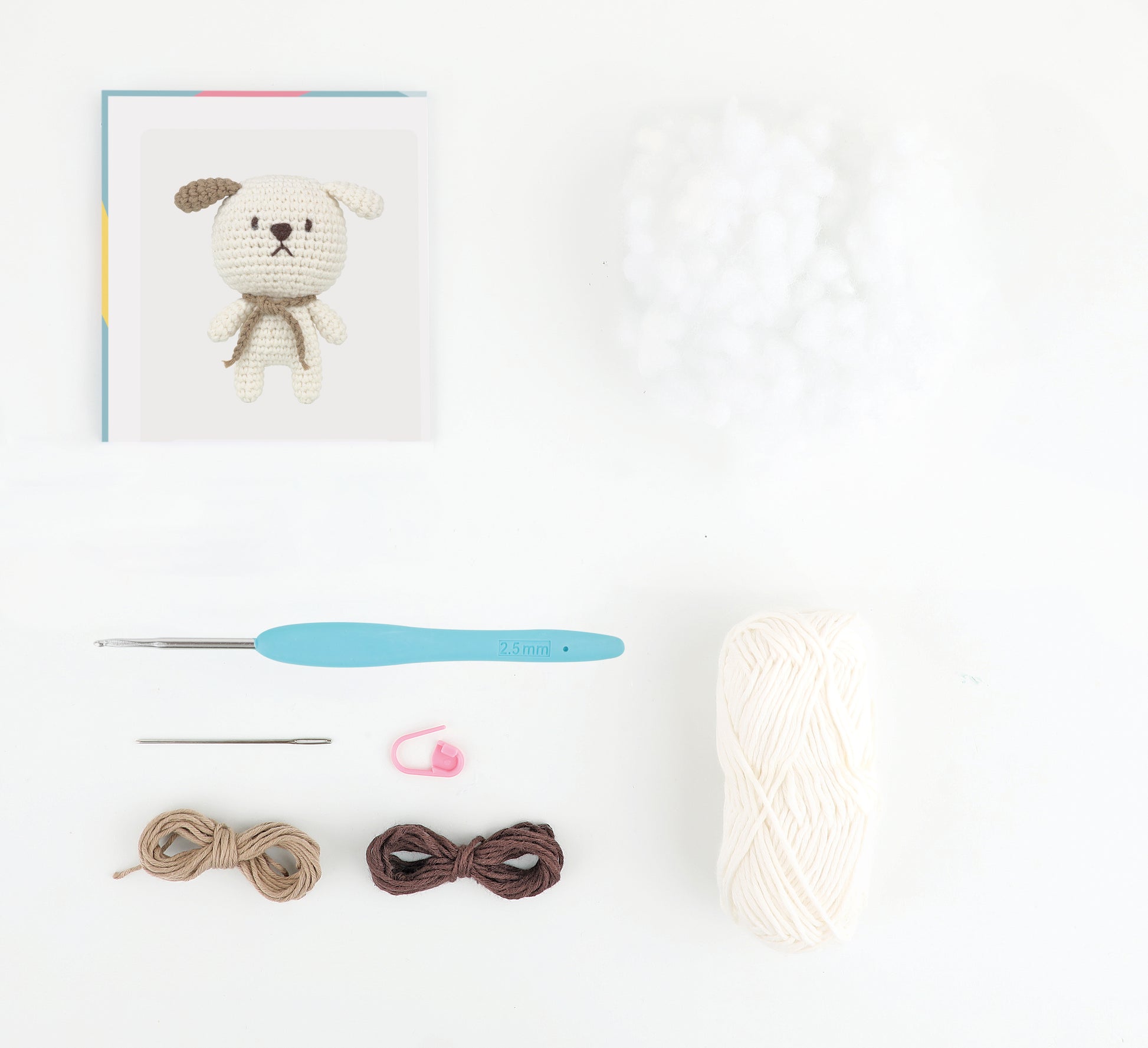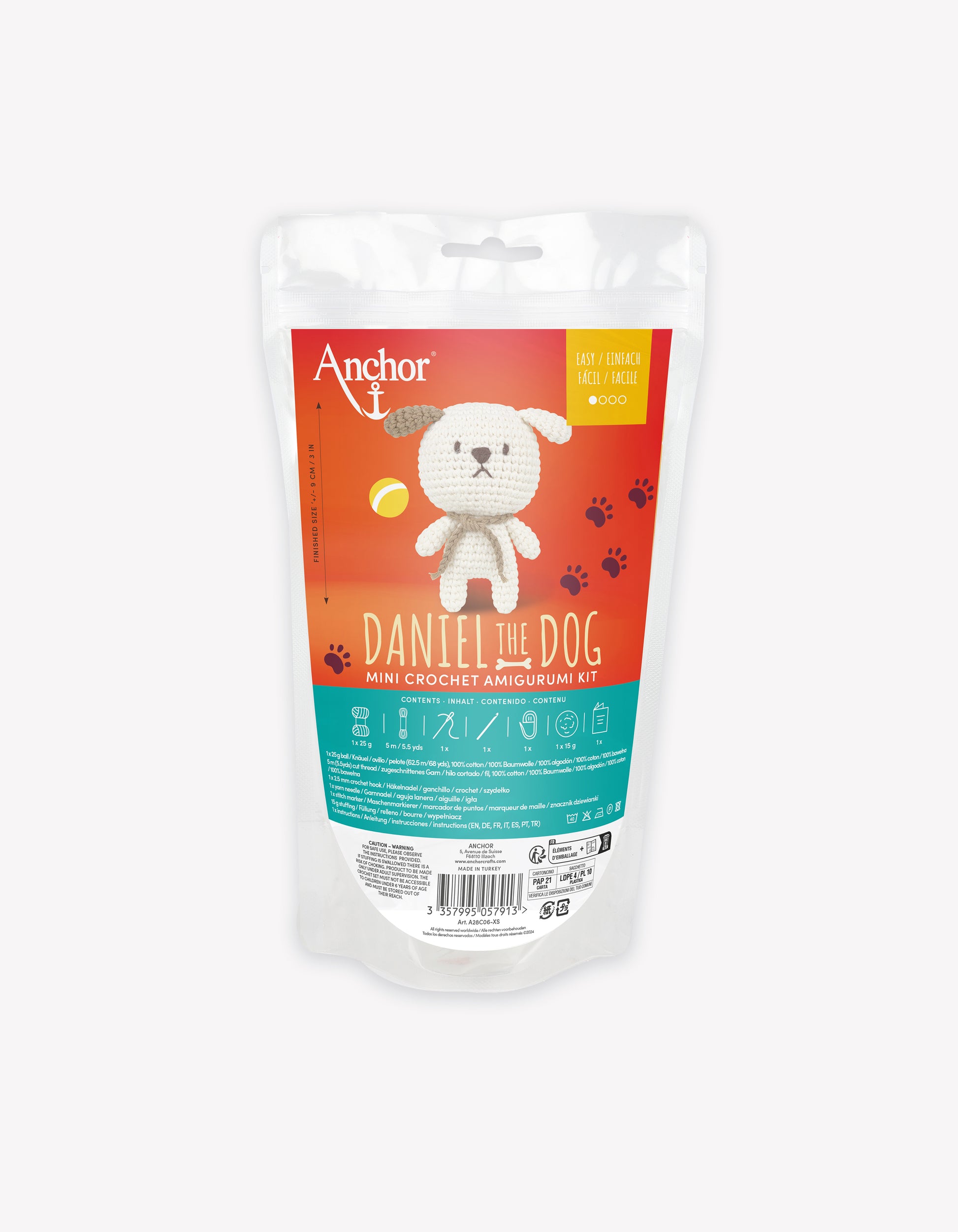 Les débutants adoreront donner vie à ce mini design Daniel le chien. Le kit contient tout ce dont vous avez besoin pour réaliser votre amigurumi, y compris du fil 100% Coton, un crochet, des accessoires, du rembourrage et des instructions.