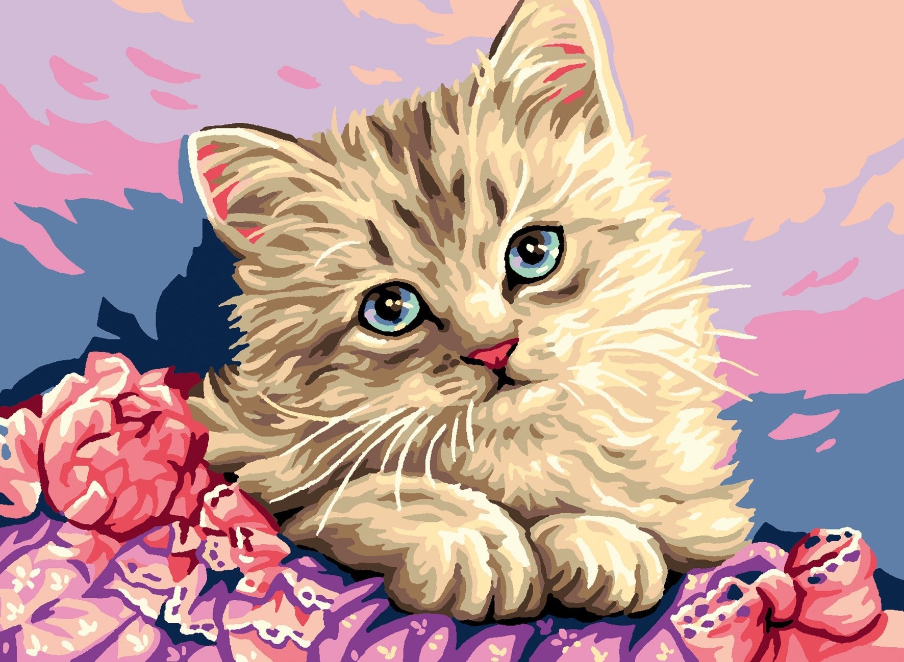 Royal Paris "Kitten with Flowers" Tapestry Canvas