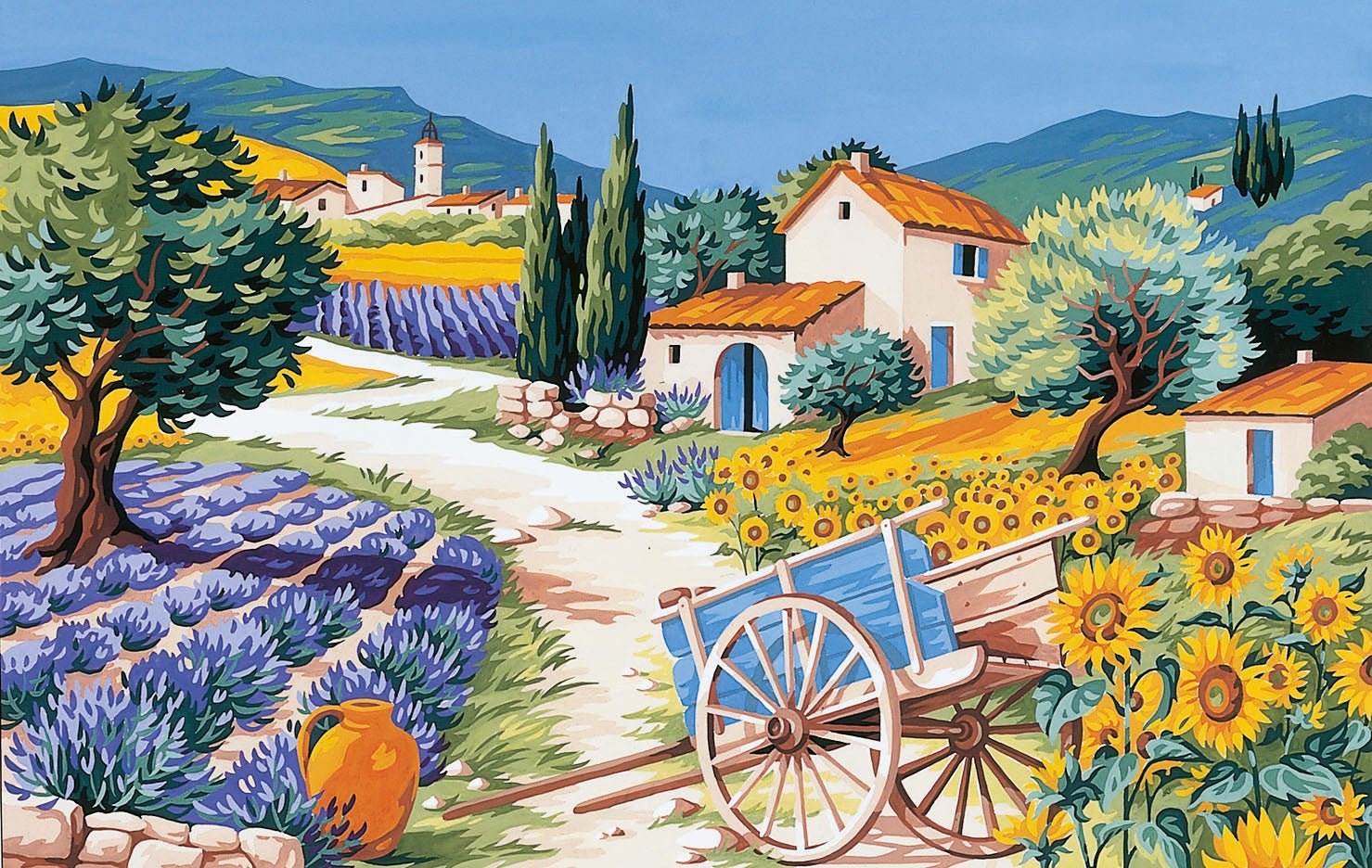Questo canovaccio cattura la bellezza della campagna provenzale. Il tuo lavoro finito apparirà bellissimo incorniciato su una parete. Adatto a ricamatrici esperte. I nostri disegni sono stampati su canovaccio 100% cotone.