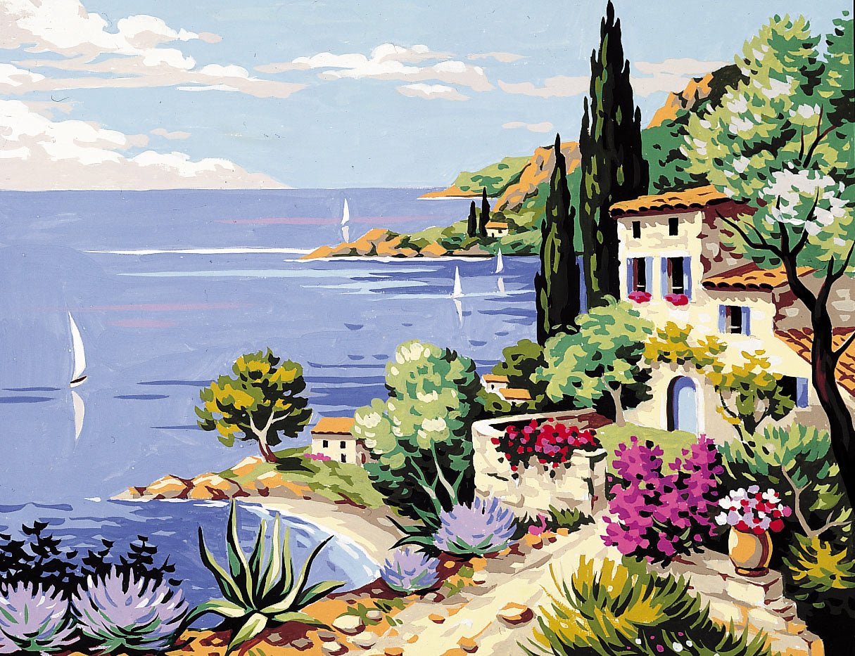 This detailed canvas features a gorgeous coastal Mediterranean scene. Your finished piece will look beautiful framed on a wall. Suitable for experienced stitchers. Our designs are printed on a 100% cotton canvas.