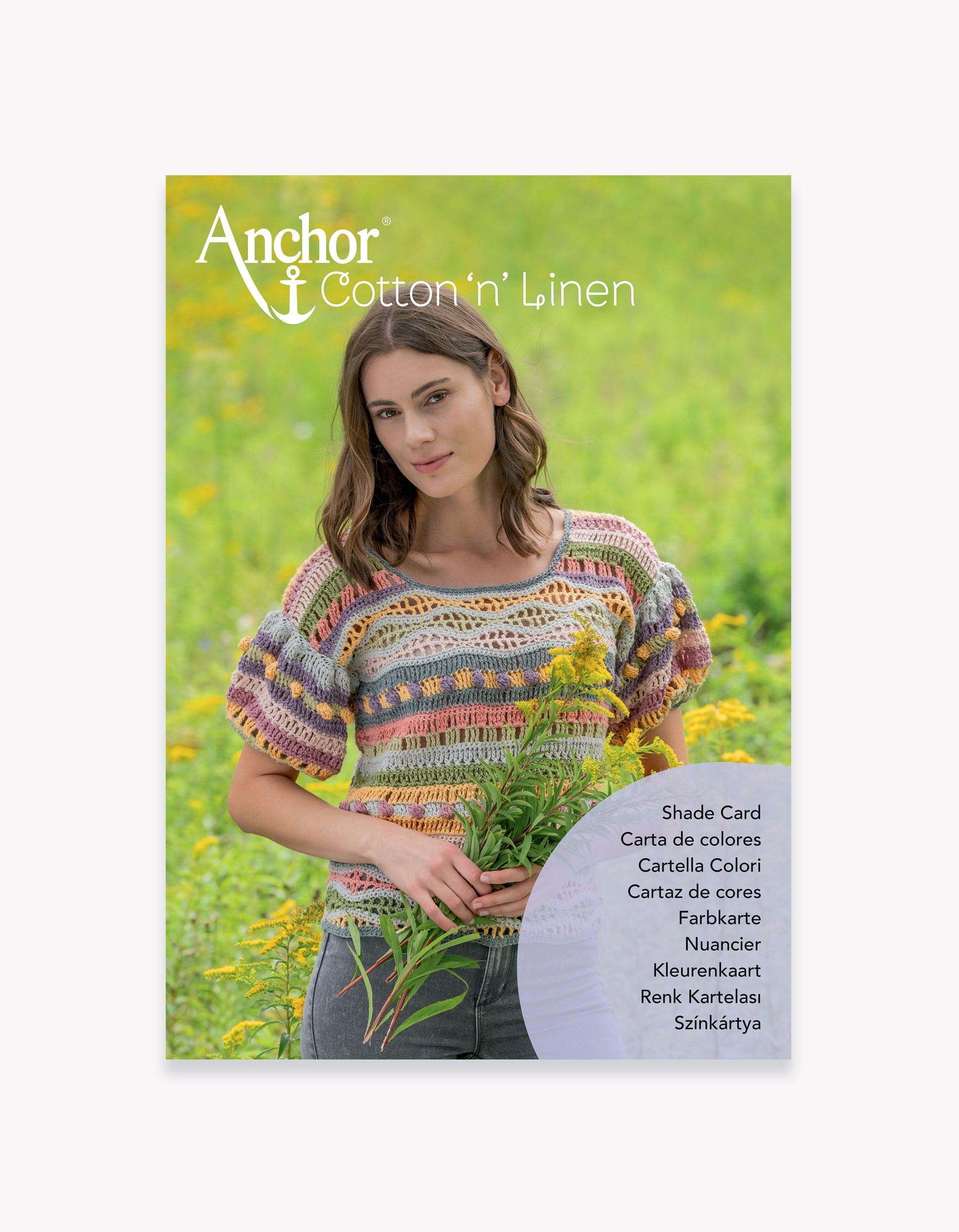 Este cartão inclui fio Amostra de cada tonalidade de Anchor Algodão ‘n’ Linho. É um acessório indispensável para ajudá-lo a selecionar o fio para o seu próximo projeto Crochet ou Tricot .